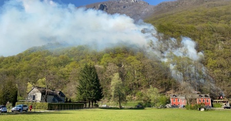 AVEGNO GORDEVIO - I pompieri sono entrati in azione a Gordevio, in Valle Maggia, per un incendio boschivo. Il rogo è scoppiato poco prima delle 17.