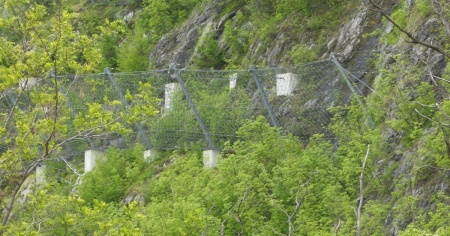 Lo scoscendimento è stato fermato dalle reti di sicurezza poste a monte del campo stradale.