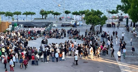Sono assai più di 200 le persone che questa sera si sono riunite nello spazio situato direttamente accanto a Palazzo Civico. L'atmosfera è «rilassata e pacifica», ci conferma un lettore presente in loco.
