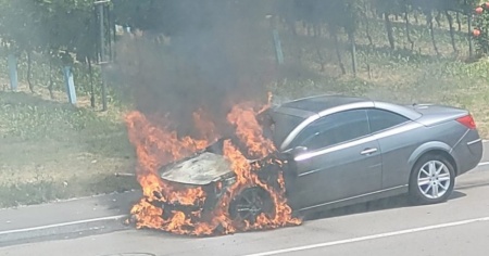 Il conducente, accortosi del fumo che fuoriusciva dal vano motore, è riuscito ad abbandonare l'abitacolo della sua Renault prima che divampassero le fiamme.