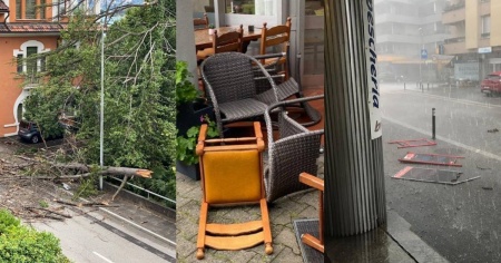 Tavolini di ristoranti rovesciati, sedie all'aria, fioriere ribaltate dalla forza del vento. In tutto il Locarnese e nella Riviera alla pioggia si sono accompagnate anche forti grandinate nella mattinata. Ma i guai non si limitano al Sopraceneri. Nel Luganese e nel Mendrisiotto, dove l'allerta è di grado minore (2) non sono mancati disagi alla circolazione e chiamate ai pompieri. A Melide si segnala la caduta di un albero su un palo della luce, nella zona del lungolago Motta.