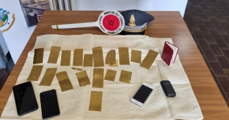 Visto il rifiuto dell'uomo a mostrare cosa stesse nascondendo, è stato accompagnato in caserma. Qui, dopo un controllo più approfondito, sono state rinvenute ben 23 lamine d’oro, per un peso complessivo di 800 grammi, riportanti l’indicazione “AU 999,9”, il cui valore ammonta a circa 40.000 euro (circa 43mila franchi).