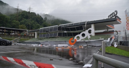 Il crollo è avvenuto questa mattina, attorno alle 9.30, a Noranco. Quella situata lungo via Pian Scairolo è una stazione di servizio di nuovissima realizzazione, inaugurata appena lo scorso 29 aprile.