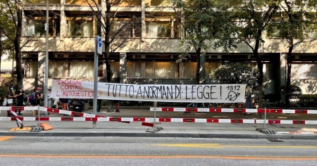 LUGANO - L'autogestione è tornata in strada a protestare. Stavolta per un “presidio rumoroso contro la repressione“ che sta andando in scena in via Pretorio a Lugano: un gruppo di persone si è appostato all'esterno del Ministero Pubblico, dove sono stati anche appesi alcuni striscioni.