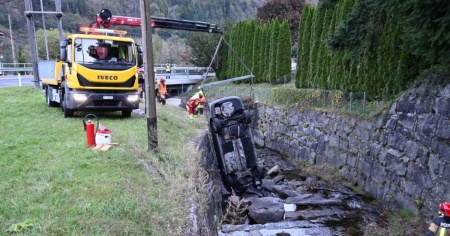 ACQUAROSSA - Ha perso il controllo del veicolo, ed è finito nel riale. Rocambolesco incidente oggi pomeriggio a Corzoneso, nel comune di Acquarossa.