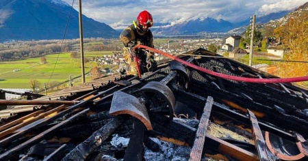 L'incendio, divampato questa mattina a Cugnasco, si è propagato anche al tetto.
