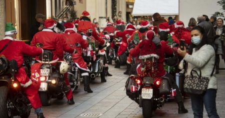 LUGANO - Una nutrita schiera di San (e Sante) Nicolao in sella a rombanti Harley Davidson, hanno transitato oggi per le vie di Lugano, destinazione Piazza Rezzonico.