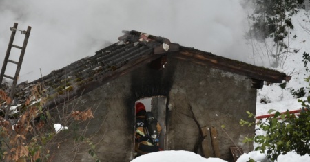 RIVERA - Fuoco in mezzo alla neve. Sarebbe un corto circuito la probabile causa di un incendio sviluppatosi stamattina in un rustico in via ai Monti a Rivera.