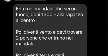 Il "gioco del mandala" - Uno scambio veloce di messaggi rivela il succo di questo "gioco del mandala" (già noto all'estero e che ora sembra essere approdato anche in Ticino): chi partecipa deve "donare" 1300 franchi, quindi deve trovare altri donatori. Dopo diversi step si dovrebbe ricevere il ricco premio. «Non è una truffa. Solo un bellissimo gioco dove, tra donne, ci aiutiamo a realizzare i nostri sogni», spiega la conoscente. «Siamo tutte ticinesi, ci si conosce», aggiunge.