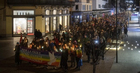 BELLINZONA - Una fiaccolata per chiedere la pace e la solidarietà internazionale. Si tratta della manifestazione - promossa da oltre trenta associazioni, sindacati e partiti - che ha avuto luogo questa sera a Bellinzona, per le vie del centro storico.