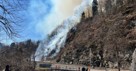 Le cause al momento sono sconosciute. Pompieri e un elicottero sono sul posto. Chiusa la cantonale, interrotto il traffico ferroviaria.