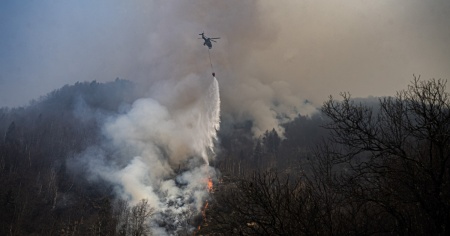«La situazione è peggiorata a causa della vegetazione molto secca che si trova nel bosco», spiega il responsabile delle operazioni di spegnimento Tiziano Guarisco.