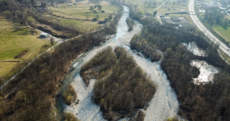 Siccità, il fiume Moesa visto dall'alto
