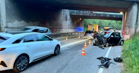 MUZZANO - Incidente stradale questa mattina, attorno alle 6.00, in via Piodella a Muzzano, all'altezza del cavalcavia dell'autostrada. Una Jeep immatricolata in Italia, che circolava in direzione di Agno, si è scontrata con una Smart...