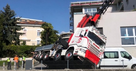 Stando alle informazioni raccolte sul posto, uno dei piedi d'appoggio del camion con gru avrebbe improvvisamente ceduto durante uno spostamento di materiale edile.