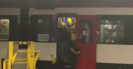 Lanciati in aria diversi materiali trovati sul treno, tra cui sassi e degli estintori. Il giovane fermato ha spintonato e minacciato due agenti e tentato di rubare i loro cellulari.