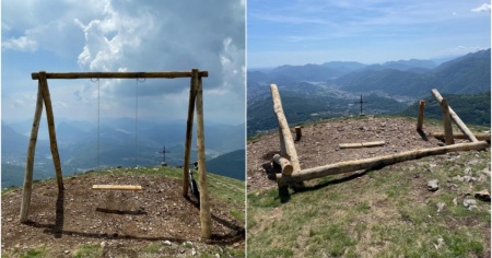 L'escursionista è evidentemente rimasto basito nel vedere la struttura - apprezzata da molti avventori per scattare fotografie dal panorama mozzafiato - distrutta. Non solo, a essere presi di mira sono stati anche i cartelli in legno situati di fianco all'altalena, anch'essi vandalizzati.