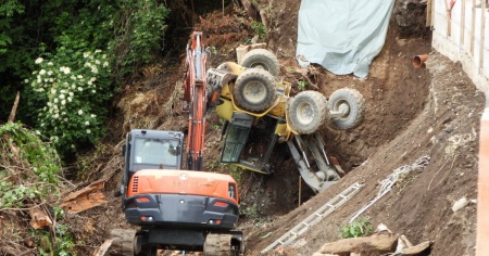 Cade in una scarpata con la pala gommata (che poi si ribalta)
