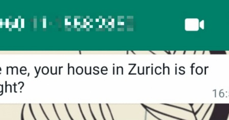 LUGANO - In generale quando su WhatsApp ti scrive qualcuno che non conosci chiedendoti qualcosa di veramente strano è meglio non fidarsi. Una regola, questa, che vale due volte se a scriverti è un numero MOLTO strano che ti chiede, in inglese, se affitti la tua casa... a Zurigo. L'interessata in questione risponde al nome di Ne, e sembra davvero convinta.