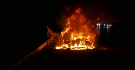 OSOGNA - Un veicolo ha preso fuoco ed è stato completamente avvolto dalle fiamme questa notte sull'autostrada A2, all'altezza di Osogna (Comune di Riviera).
