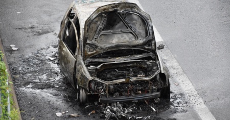 Nonostante il pronto intervento dei pompieri, l'auto è bruciata totalmente, come dimostrano le immagini.