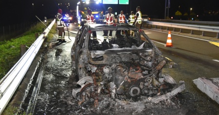 Un'auto ha preso fuoco la scorsa notte, poco prima delle 23, presso lo svincolo autostradale di Camorino.