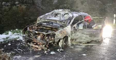 Auto completamente distrutta dalle fiamme, salvo il conducente