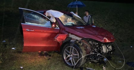 Nel suo percorso ha urtato una seconda auto che si trovava sull'altra corsia, sradicando poi la rete di sicurezza a lato della carreggiata e terminando la sua corsa nell'erba. L'uomo, rimasto ferito, è stato trasportato in ospedale.