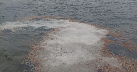Le chiazze, di colore bianco, sono comparse sul lago all'ora di pranzo.