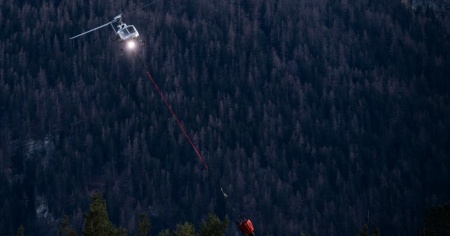 Visto il rischio di propagazione a causa del vento sono stati attivati due elicotteri, per eseguire dei lanci di acqua dall’alto.