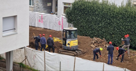 Al lavoro, per il quarto giorno consecutivo, vi era questa mattina una ruspa utilizzata per smuovere il terreno e una decina di operai lì pronti a setacciarlo minuziosamente con dei rastrelli.