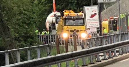 Si rovescia una betoniera, interviene l’autogrù