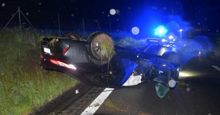 Dopo aver percorso la scarpata, l'auto si è ribaltata, è rientrata poi sulla carreggiata terminando la propria corsa capovolta sul tetto.