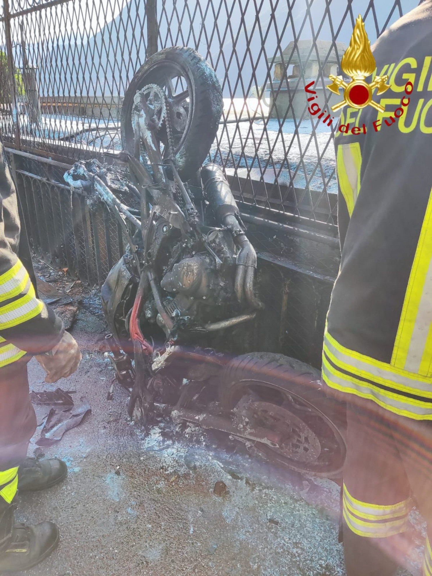 Poco prima delle 8, una moto si è scontrata con una macchina. A seguito dell'impatto, il veicolo su due ruote ha preso fuoco: le fiamme sono state spente con un estintore da un conducente di un bus turistico.
