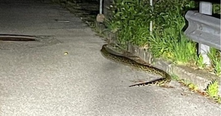CADEMARIO - È stato un incontro decisamente singolare quello avvenuto stanotte a Cademario. Intorno alle 3 del mattino un residente ha avvistato un enorme serpente, rivelatosi poi essere un pitone, all'imbocco della via ai Camp dra Porta. E sui social le foto del rettile hanno subito fatto scalpore.