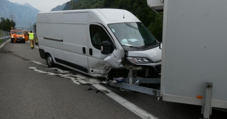 GIORNICO - Oggi pomeriggio un furgone è andato a sbattere contro un camion con rimorchio sulla A2, nei pressi dello svincolo di Giornico. I conducenti di entrambi i veicoli sono rimasti illesi.