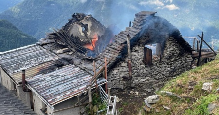 GORDEVIO - Un rustico è andato a fuoco stamattina sull'Alpe Mergozzo, in territorio di Gordevio. L'allarme è scattato intorno alle 8.50, quando è stato richiesto l'intervento del gruppo di picchetto dei Pompieri di Locarno.
