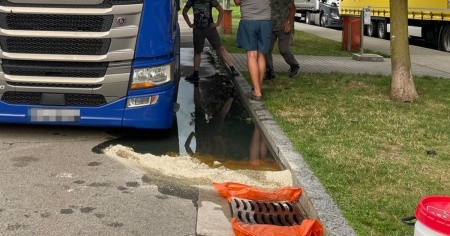 Nell'effettuare una manovra di parcheggio, un autista ha danneggiato uno dei serbatoi dell'autoarticolato. Scongiurato danni all'ambiente.