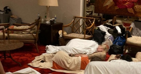Mentre la nuova sistemazione non è certo delle migliori. Insomma la vacanza è decisamente finita: «Siamo in albergo, sì, ma accampati assieme a migliaia di altri turisti sfollati. Dormiamo per terra».
