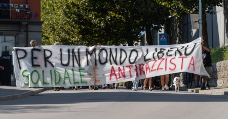Autogestiti in corteo al Centro federale d'asilo di Chiasso