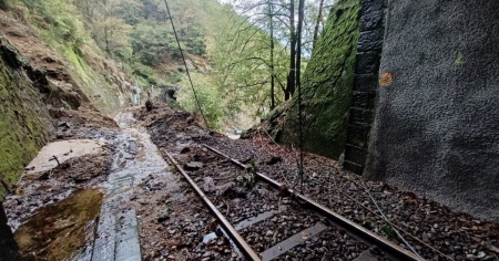 Come detto, i danni alla ferrovia sono principalmente dovuti alla frana sulla tratta tra Val Ingiustria e Sassalto dove, in alcuni tratti, i binari sono completamente ostruiti.