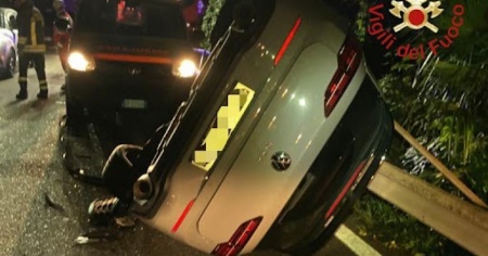 Auto svizzera si ribalta a Porlezza, ferite serie per il conducente