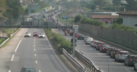 Dopo un incidente fra Melide e Maroggia il traffico verso sud resta congestionato