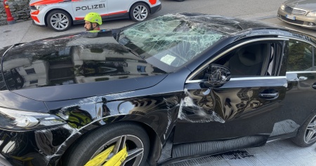 Stando alle prime informazioni raccolte sul posto, il conducente di una Mercedes immatricolata in Italia, che circolava verso il valico di confine, ha perso il controllo del veicolo che ha sbandato e si è rovesciato sul tetto.