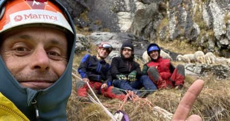 Nicola e Daniele Ambrosini raggiungono in elicottero il Cavalcorto e imbragati, per non precipitare nel vuoto, compiono l'impresa.