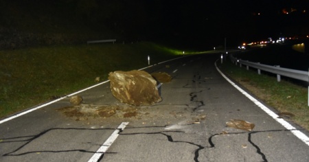 AQUILA - Martedì poco prima della mezzanotte, sulla strada cantonale in zona Latteria ad Aquila, si è verificato un evento naturale. Un masso è franato dalla parete rocciosa e ha attraversato il bosco sottostante a grande velocit...