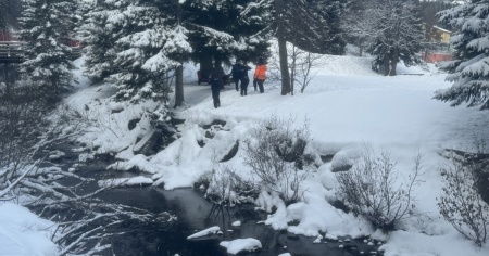 Bambino con il bob finisce nel fiume: il padre lo soccorre e si ferisce