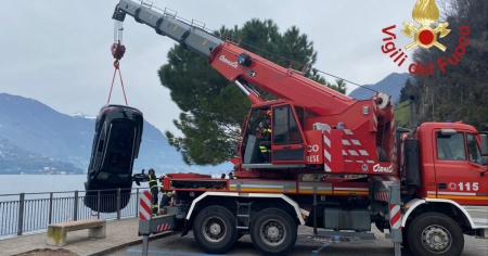 COMO - Le acque profonde, gelide e scure, hanno reso complesse le operazioni di recupero del veicolo finito nel lago di Como nella tarda serata di ieri. La vicenda, già descritta, ha tinte fosche e un esito tragico. Tutto sarebbe partito da un litigio consumatosi nel parcheggio di Viale Geno, a bordo lago. Lì i due protagonisti (un uomo di 38 anni e una donna di 45) sono saliti a bordo dell'auto parcheggiata che, a quel punto, è stata messa in moto ed ha percorso a tutta velocità i pochi metri che la separavano dall'acqua. Un tuffo costato la vita a entrambi, recuperati nel corso della notte dai sommozzatori giunti nel frattempo da Torino.