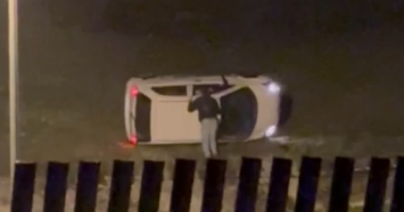 I tentativi di riportare a terra le quattro ruote però risultano vani. Sembra quindi che l'uomo tenti di chiamare qualcuno. La polizia? Qualche conoscente per avere aiuto? Non è dato saperlo.