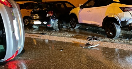 Si ribalta con l'auto dopo l'urto con i veicoli parcheggiati